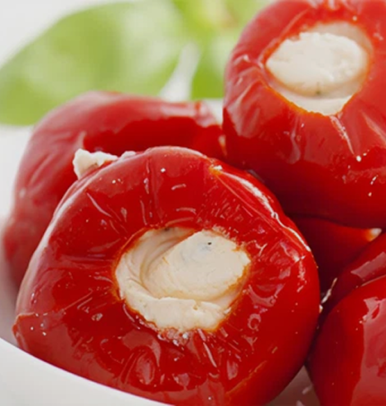Vibrant, ready-to-eat, mild, and sweet baby peppers filled with a blend of feta and cream cheese.