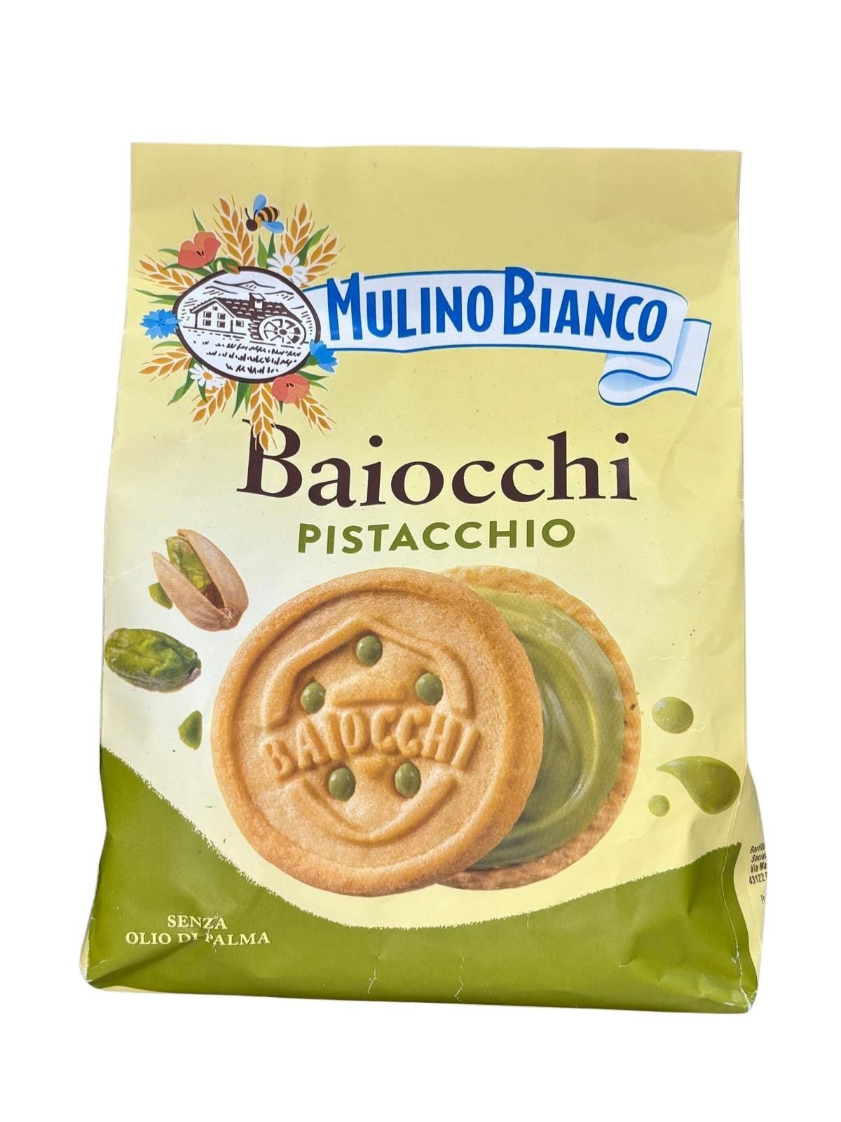Baiocchi, once the name of a small ancient Italian coin, are two buttery shortcrust biscuits enriched with a smooth pistachio cream filling.